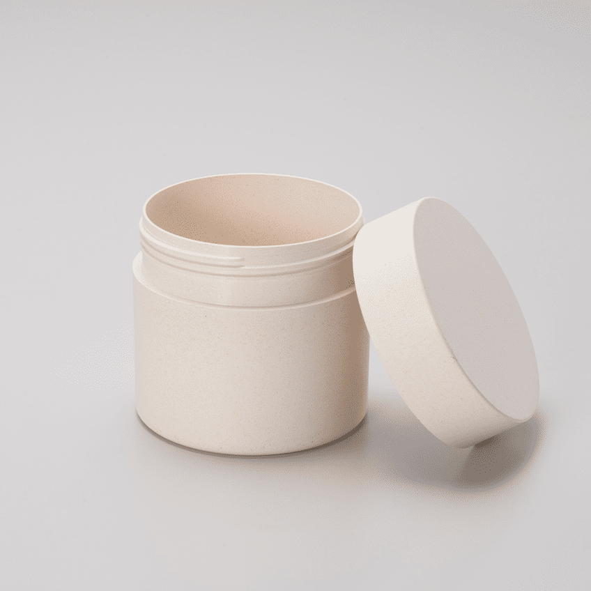 150 ml Nissha ecosense. Round-shaped premium sustainable cosmetic supplement jar. Made for dry and oil-based content only with bio-based Sulapac Universal (SUL-U) with Nissha neck finish. Collection Nissha ecosense is a high quality recyclable and compostable packaging solution for oil-based cosmetic applications. Outer layer has small hints of wood in its surface. 150 ml Nissha ecosense jars are made of Industrial Compost Certified (EN 13432/ASTM D6400) material and Food Contact Safety approved (EU) No 10/2011. Dimensions: (D x H) 66 mm x 62 mm and a weight of 73 gram.