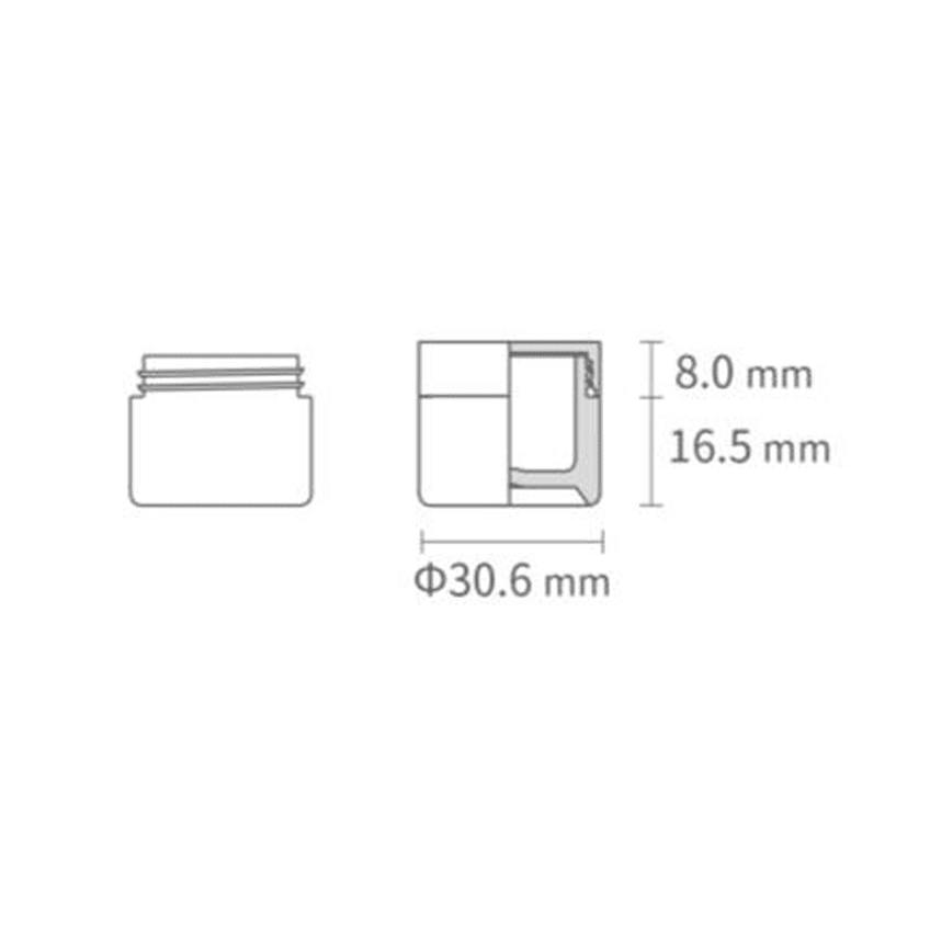 7 ml Nissha ecosense. Round-shaped premium sustainable cosmetic supplement jar. Made of patented two-layer structured bio-based Sulapac Universal (SUL-U) with Nissha neck finish. Collection Nissha ecosense is a high quality recyclable and compostable packaging solution for oil-based cosmetic applications. Outer layer has small hints of wood in its surface. 7 ml Nissha ecosense jars are made of Industrial Compost Certified (EN 13432/ASTM D6400) material and Food Contact Safety approved (EU) No 10/2011. Dimensions: (D x H) 31 mm x 25 mm and a weight of 8 gram.
