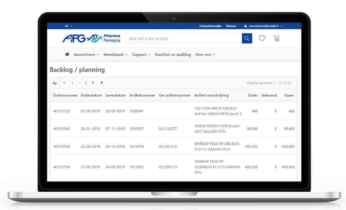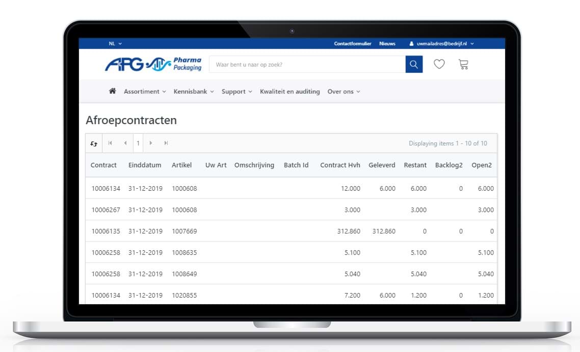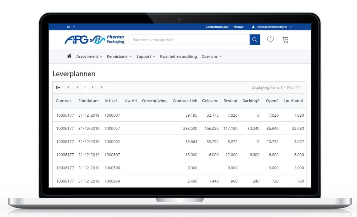 We send the invoice digitally on the day that the goods leave our warehouse. In most cases you will receive your goods within the next business day. All invoices can be found under 'Invoices' within the transactions module. You can find all offers in one place with accompanying information, such as:
