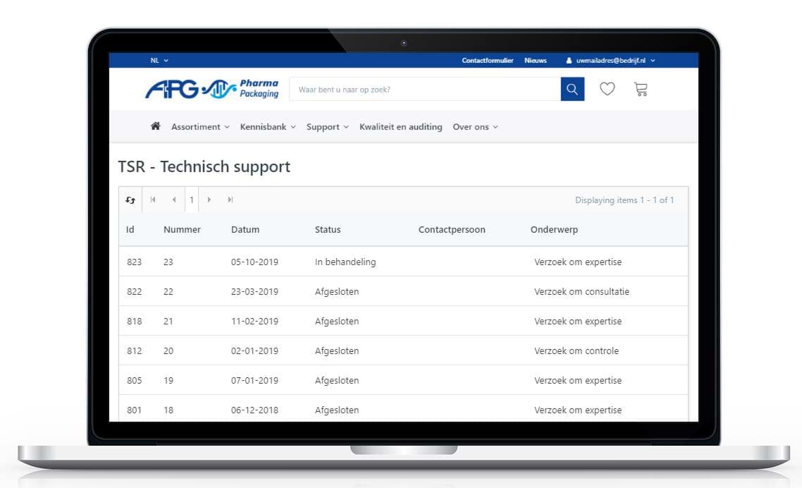 Your request for technical support (TSR: Technical Support Request) is registered in our TSR reporting system. Our Quality department will process your report within 1 working day. Your technical support request can be found under 'TSR - Technical support' within the Quality & Docs module. The benefits of the TSRM management system are: