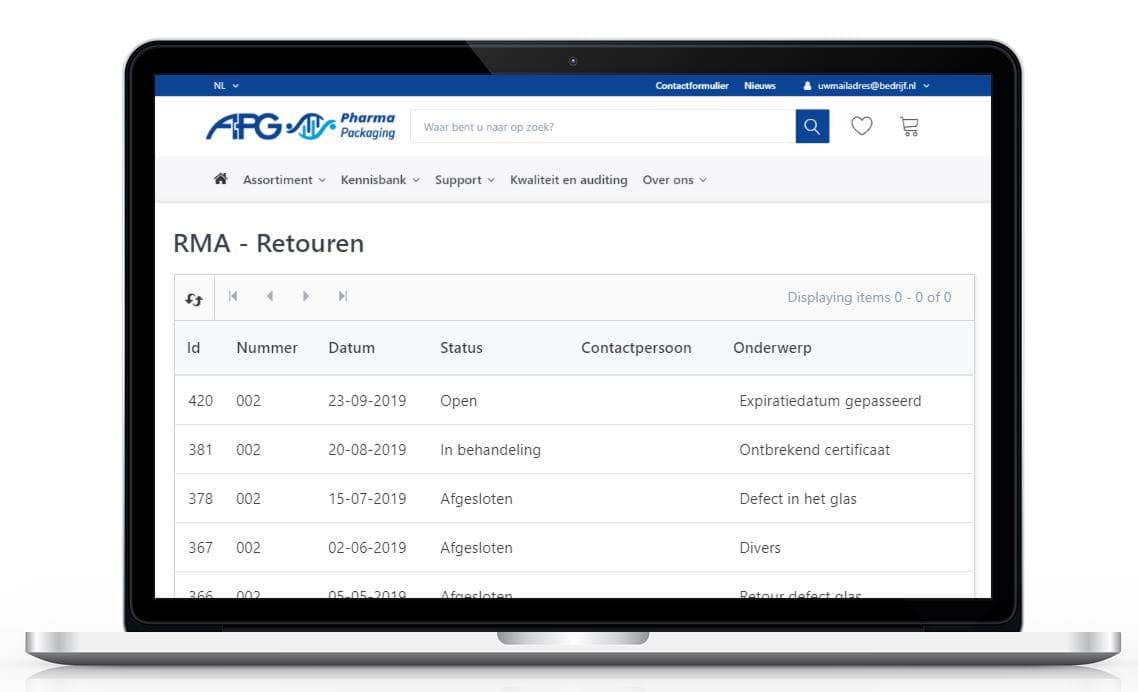 Your RMA request is registered in the TSRM management system. APG Europe uses a standardized RMA process. RMA stands for 'Return Material Authorization' or the permission to return goods to APG Europe. Your RMA request with request can be found under 'RMA - Returns' within the Quality and Docs module. The benefits of the TSRM management system are: