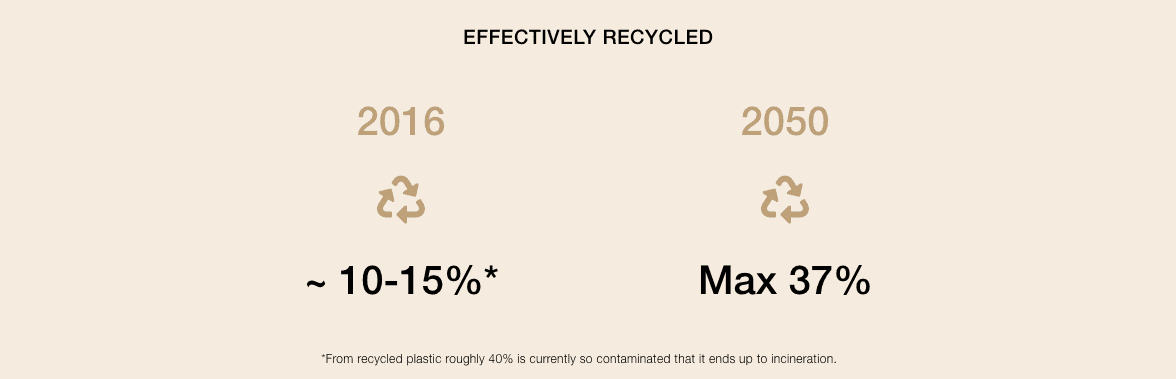 Unfortunately, most of it ends up in the nature or it is burned. Even in the most optimistic scenarios only 37% of plastic packaging will be recycled by 2050. Luckily there are new material options available that may also utilize recycled content.